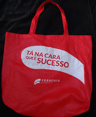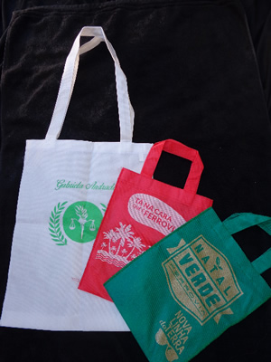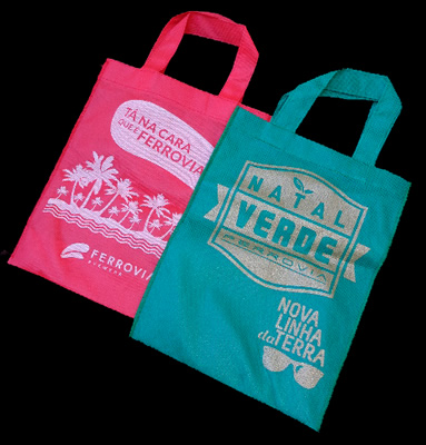 Incluimos as sacolas de tnt 60 ou 80 gramas com tamanhos e modelos variados, tendo como a costura o seu acabamento.